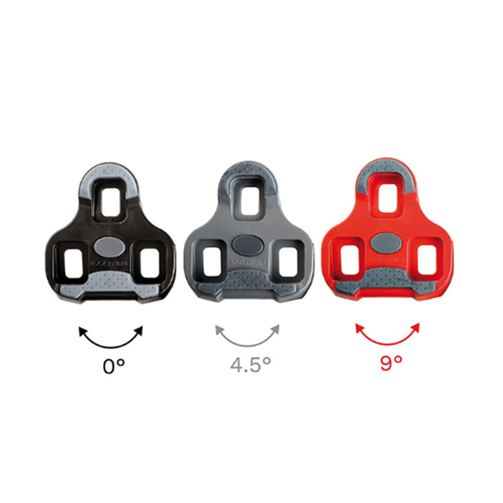 • Three float options are available to fit the needs of every cyclist: 0 ° black / 4.5 ° grey / 9 ° red.