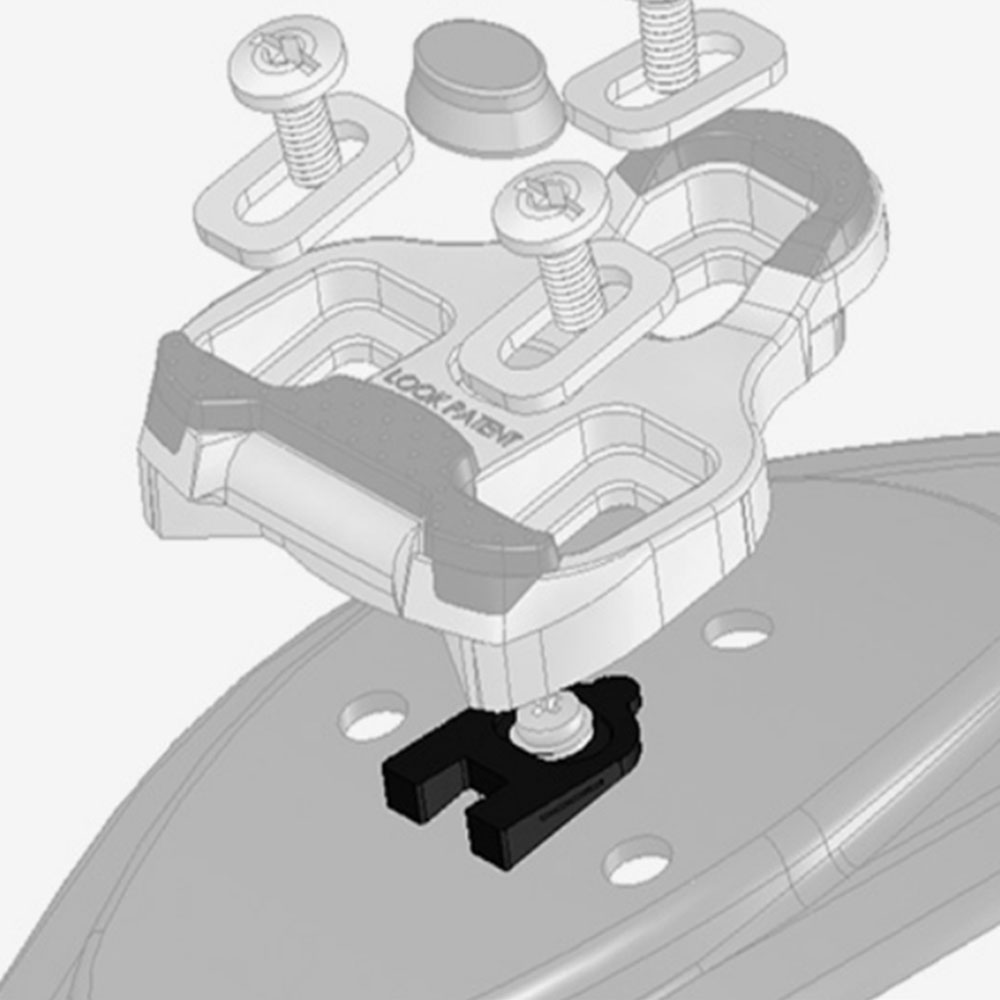 LOOK patent allows the adjustment of your cleats when you need to change them. To do so, the sole of your shoes must have a central oblong where the memory position part will be screwed.
